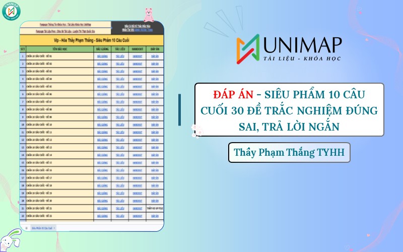 Đáp Án – Siêu Phẩm 10 Câu Cuối 30 Đề Trắc Nghiệm Đúng Sai, Trả Lời Ngắn (Thầy Phạm Thắng TYHH)